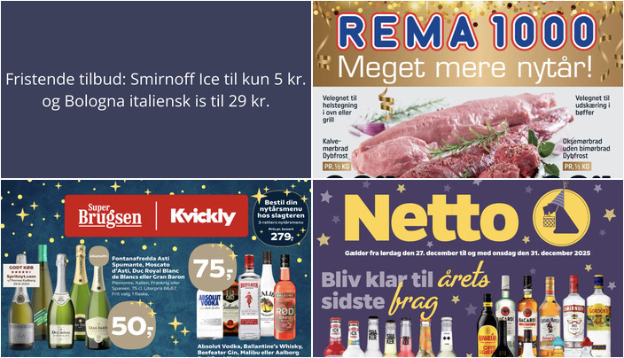Netto har et fantastisk tilbud på Smirnoff Ice, Shaker eller Mokai, hvor du kan få en flaske på 27,5 cl for kun 5 kr. + pant. Tilbuddet gælder fra lørdag den 27. december til onsdag den 31. december, og du kan købe op til 24 stk. pr. variant pr. dag.