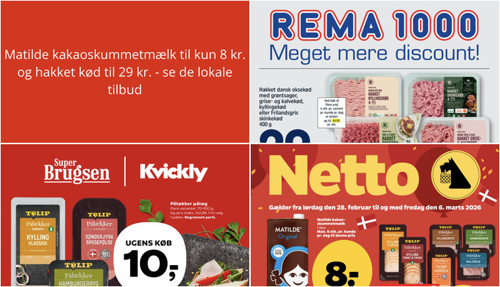 Matilde kakaoskummetmælk til kun 8 kr. og hakket kød til 29 kr. - se de lokale tilbud
